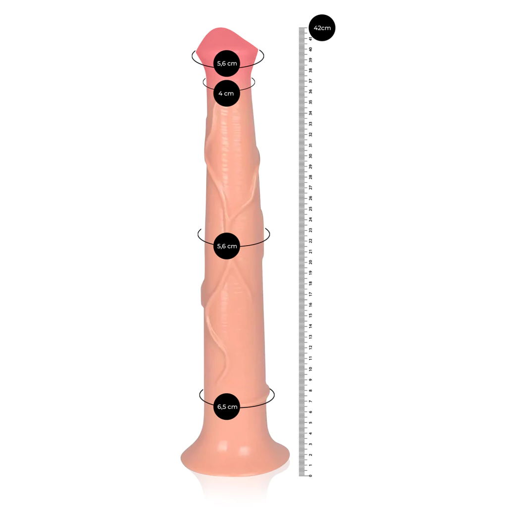 Confeccionado em PVC macio e flexível, o Big Horse proporciona penetração confortável mesmo com seu tamanho avantajado. Sua base achatada garante apoio seguro em superfícies lisas, facilitando o manuseio.
